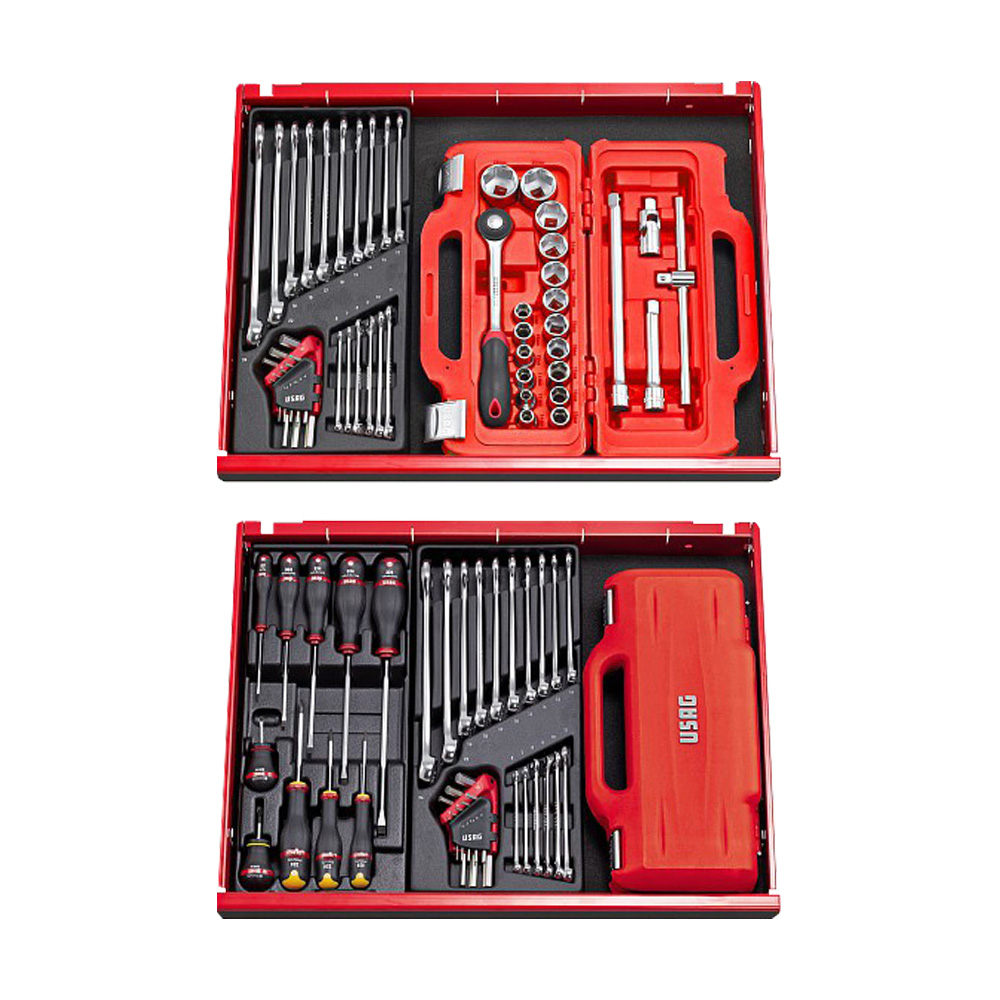 Set completo di chiavi a bussola esagonali inserito in una cassetta modulare super resistente.