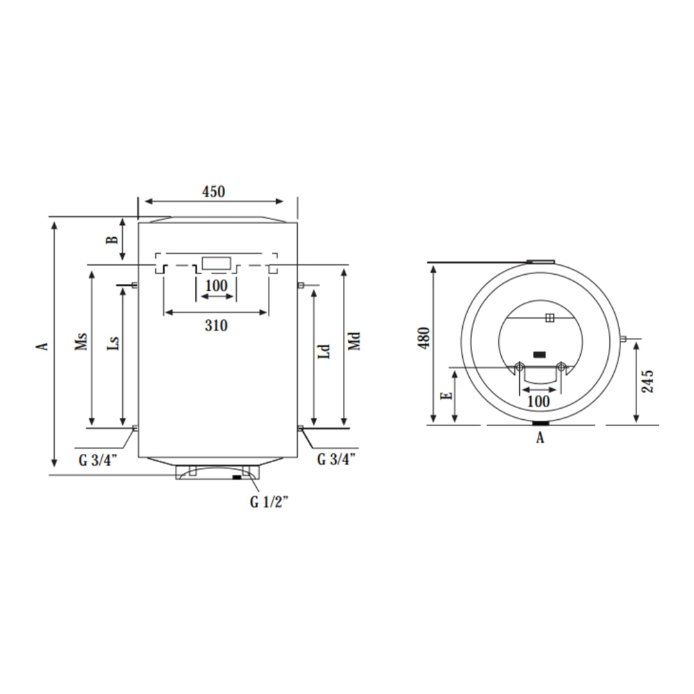 Scaldabagno elettrico verticale cilindrico da 50 litri con regolazione esterna