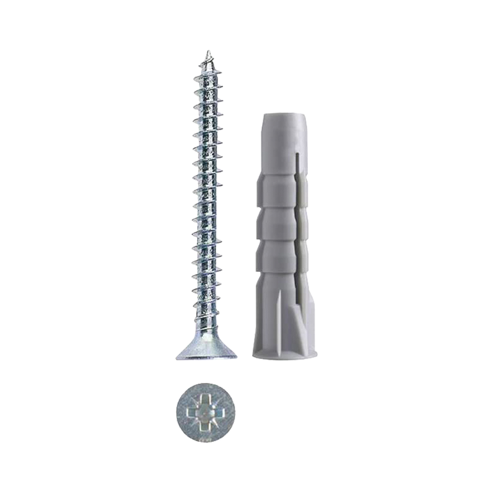 Tasselli in nylon universale da 6 mm con viti a testa svasata piana con impronta pozidriver